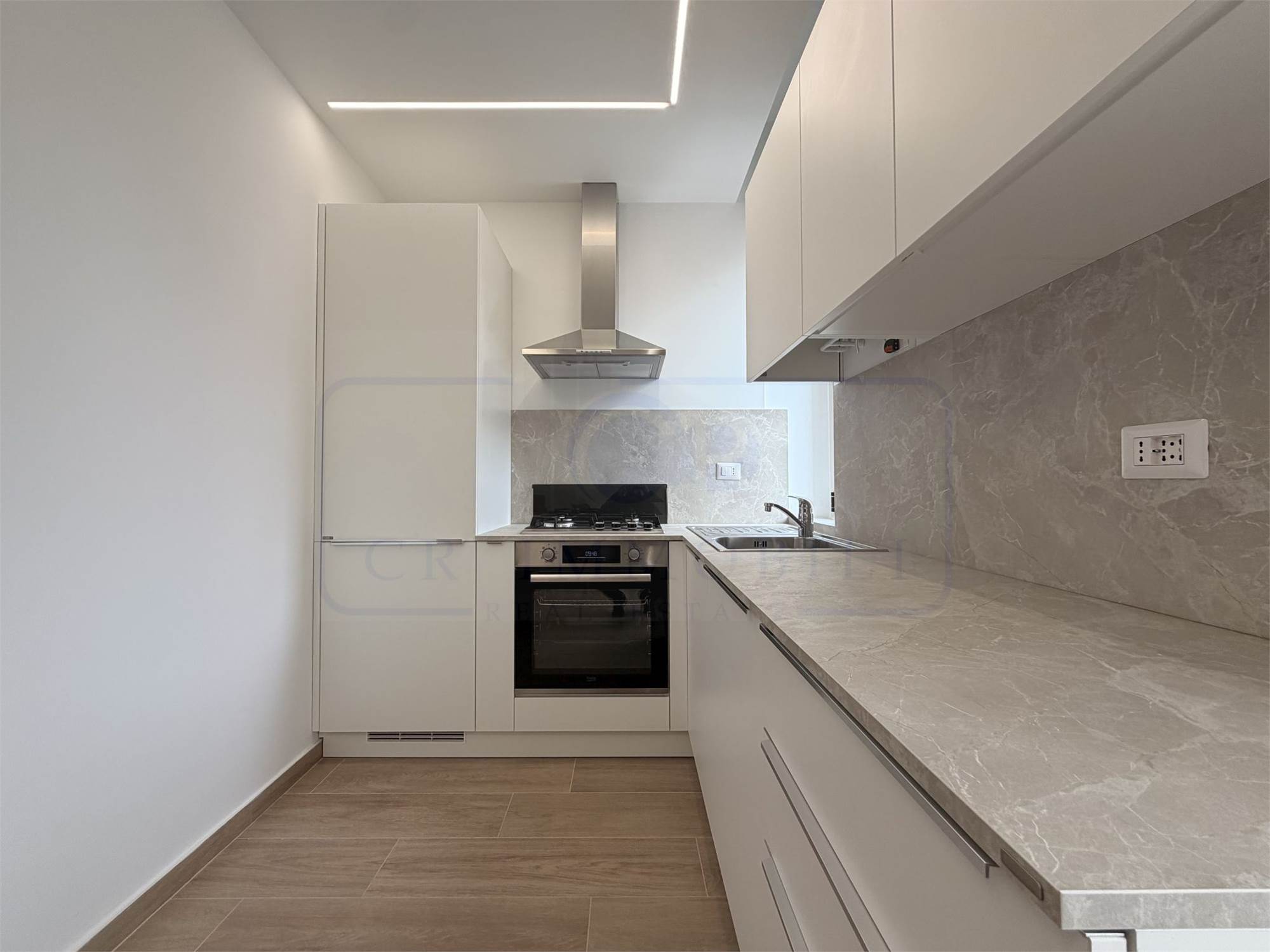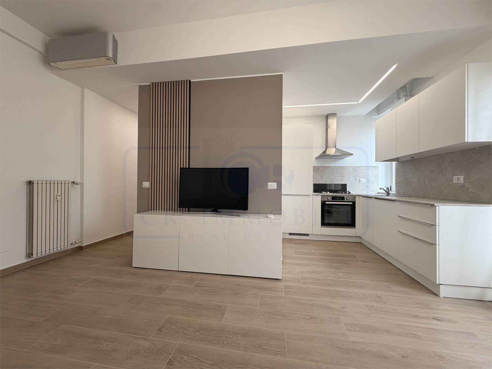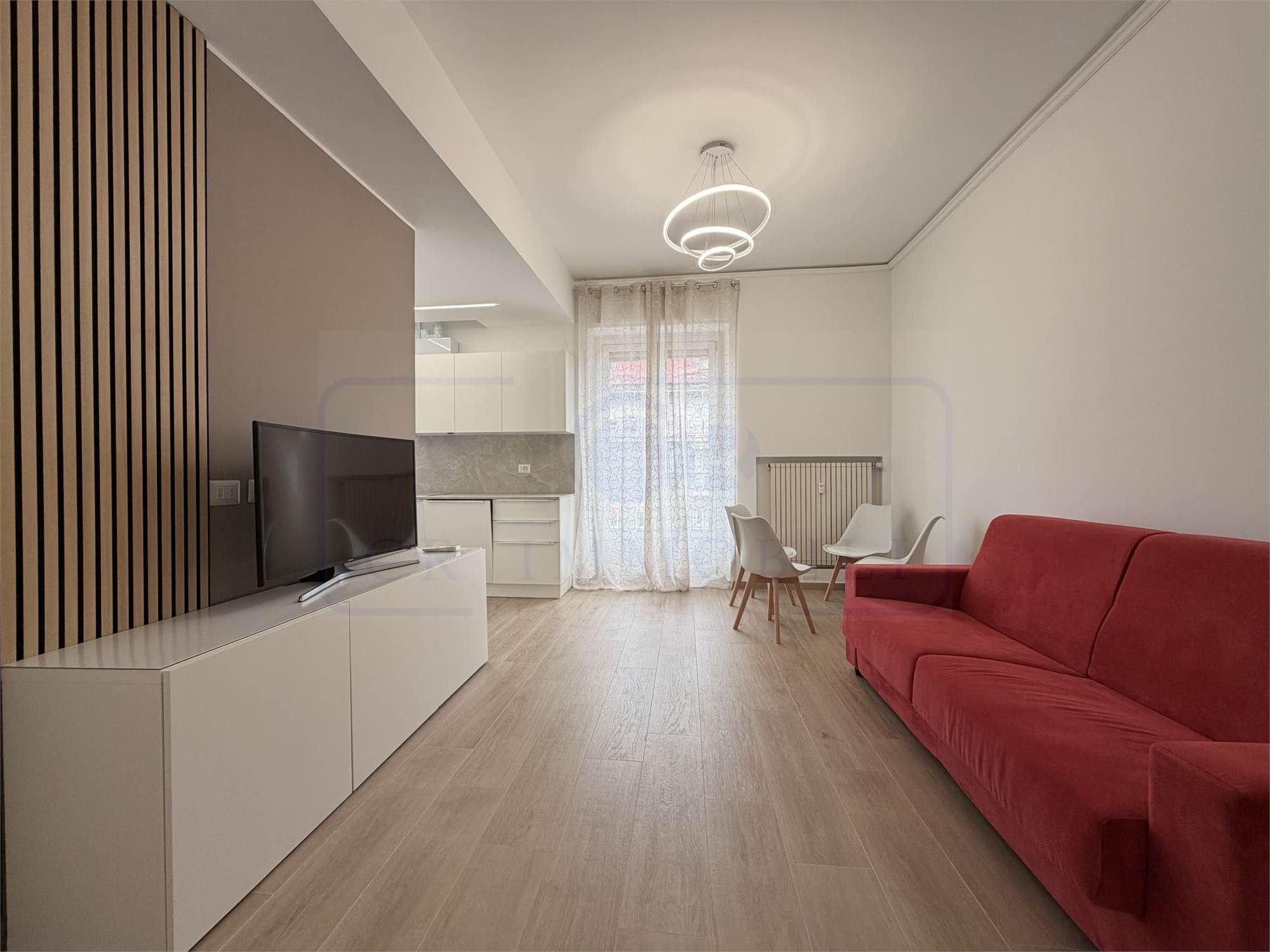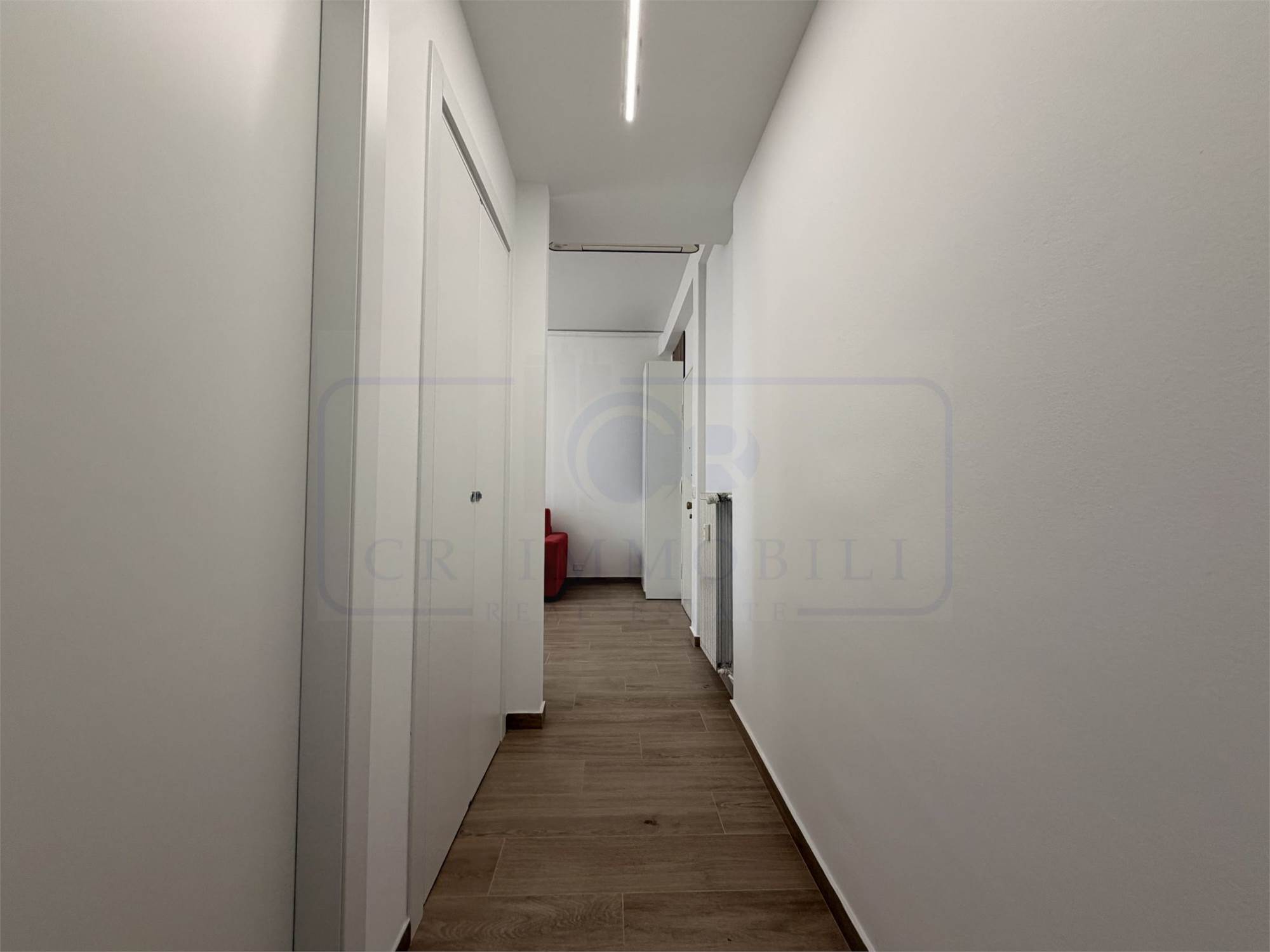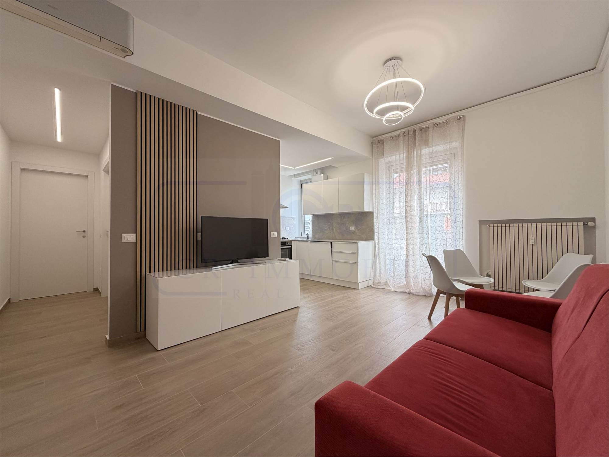 L’appartamento, oggetto di recente completa ristrutturazione e arredato con mobili nuovi, è così composto: ingresso, luminoso soggiorno con cucina a vista, balcone, disimpegno zona notte, ampia camera matrimoniale, bagno finestrato con ampia doccia e pratico ripostiglio con lavasciuga.