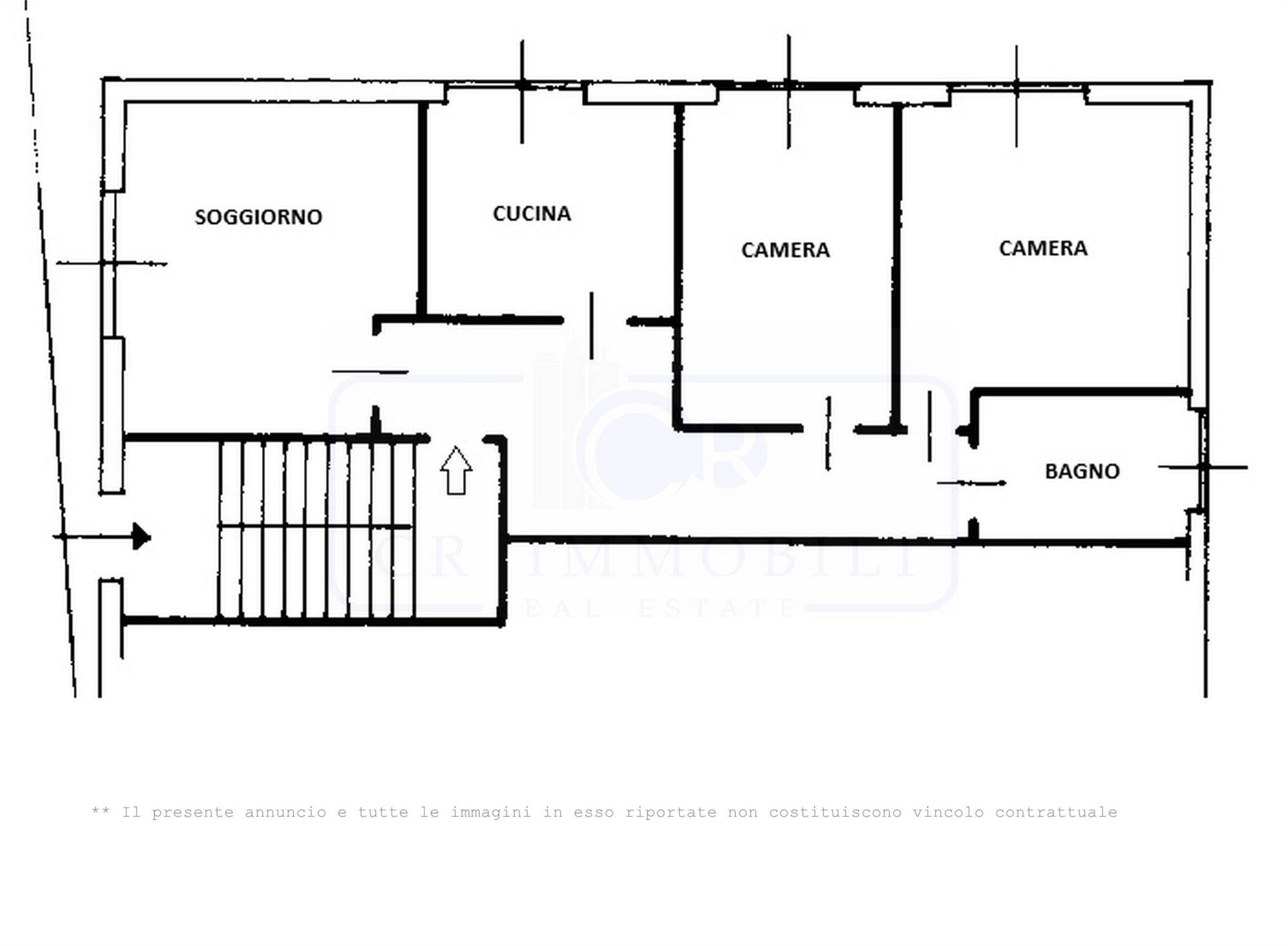 In palazzina di soli sei appartamenti senza spese condominiali, vendesi tre locali di 94mq posto al piano rialzato e composto da ingresso, soggiorno, cucina abitabile, disimpegno, camera matrimoniale, seconda camera e bagno.