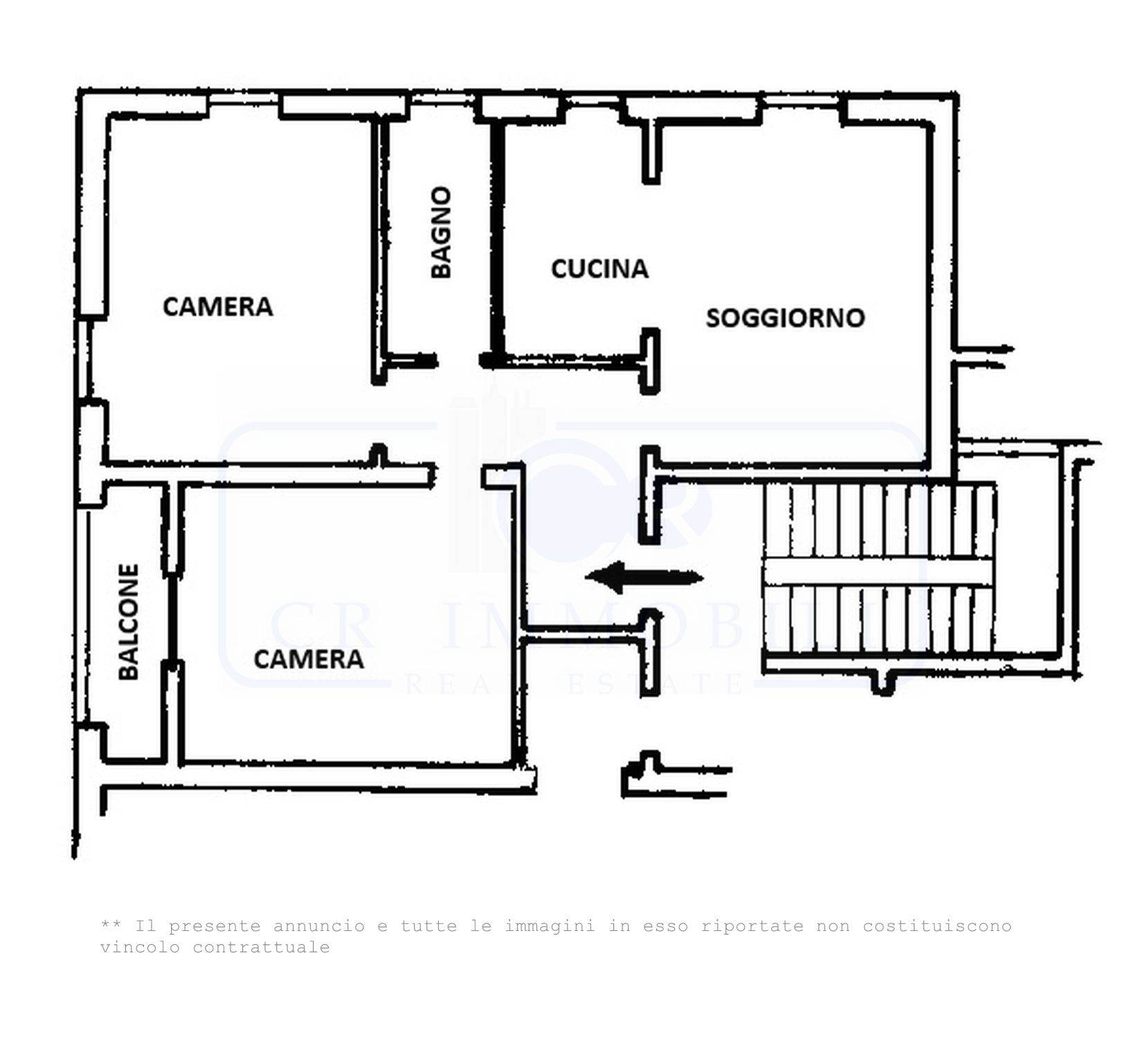L’immobile è composto da: ingresso, soggiorno, cucina semi-abitabile a vista, disimpegno zona notte, camera matrimoniale, ampia seconda camera, bagno e balcone.