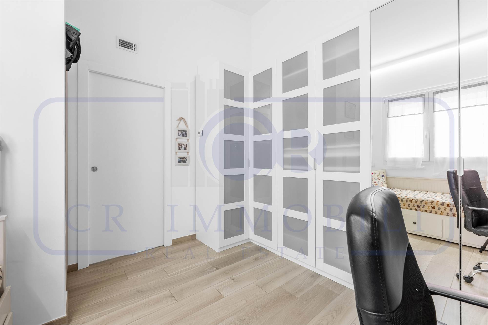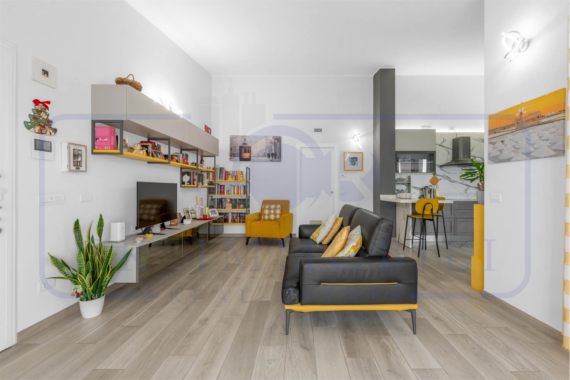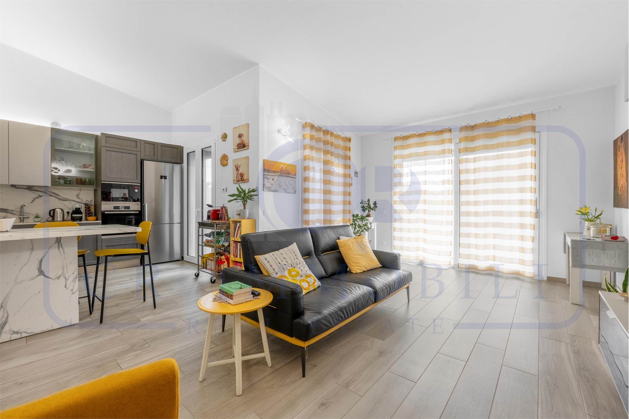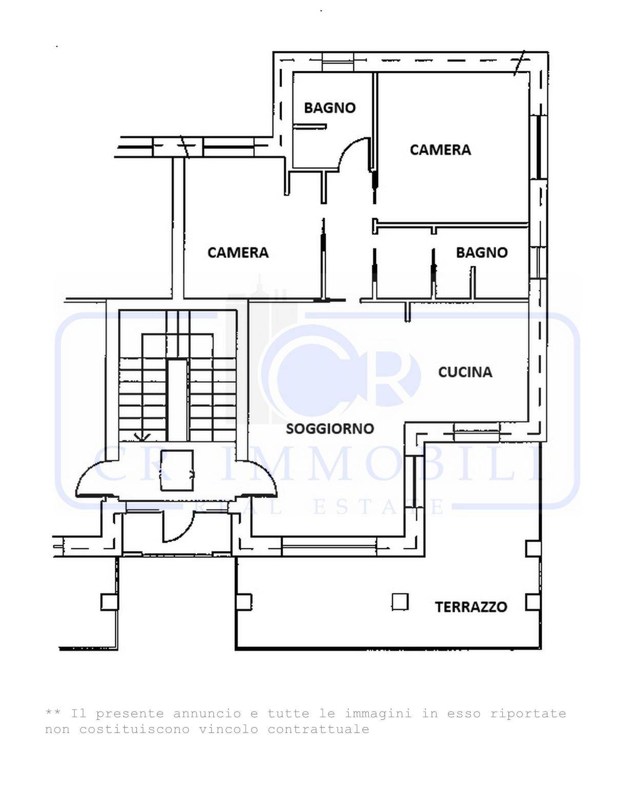 L’appartamento è composto da ingresso, luminoso soggiorno, comoda cucina a vista, terrazzo, disimpegno zona notte, camera matrimoniale, seconda camera e doppi servizi entrambi finestrati.
