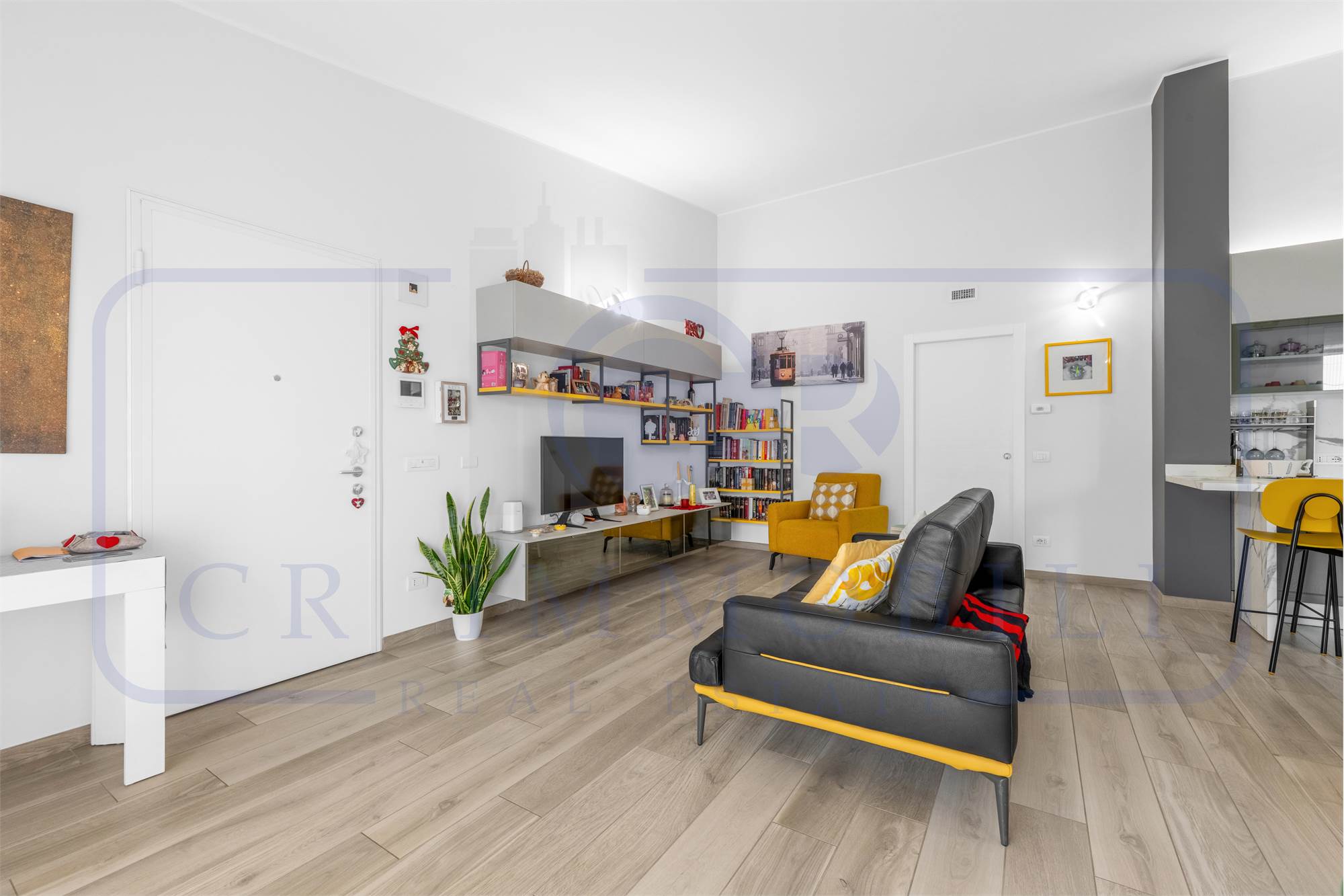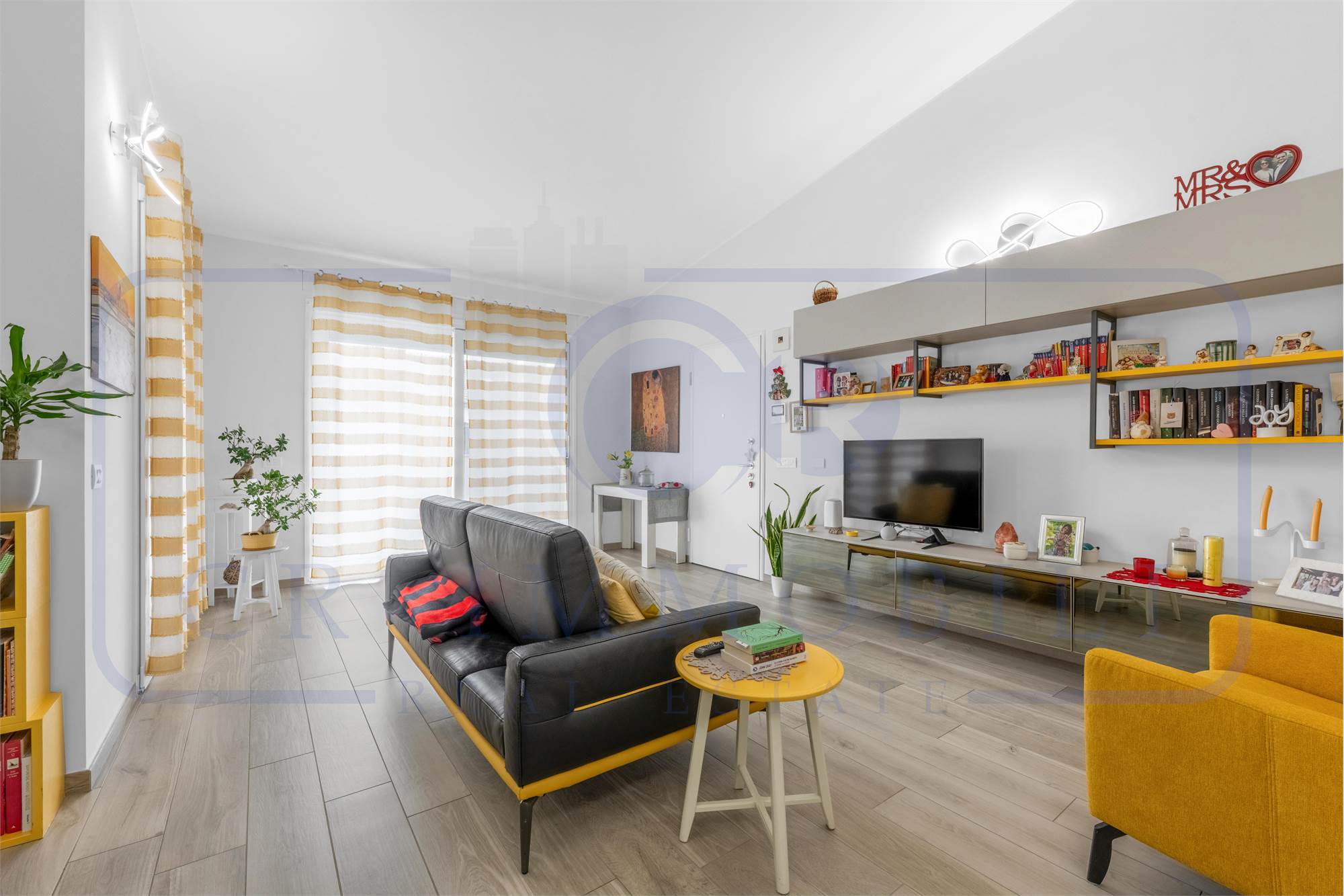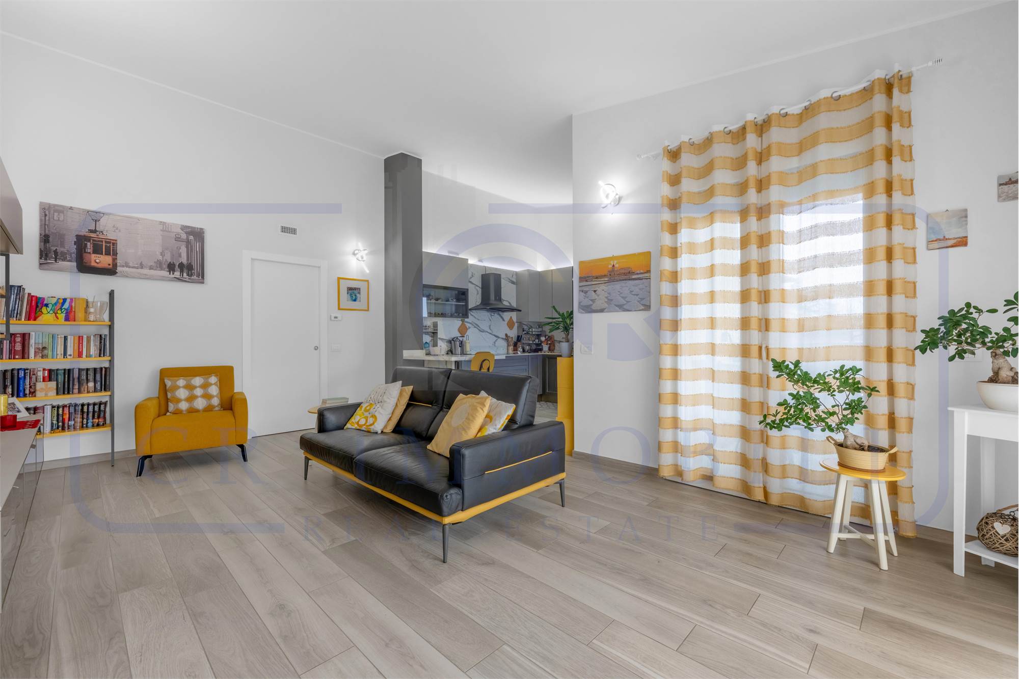 L’appartamento è composto da ingresso, luminoso soggiorno, comoda cucina a vista, terrazzo, disimpegno zona notte, camera matrimoniale, seconda camera e doppi servizi entrambi finestrati.