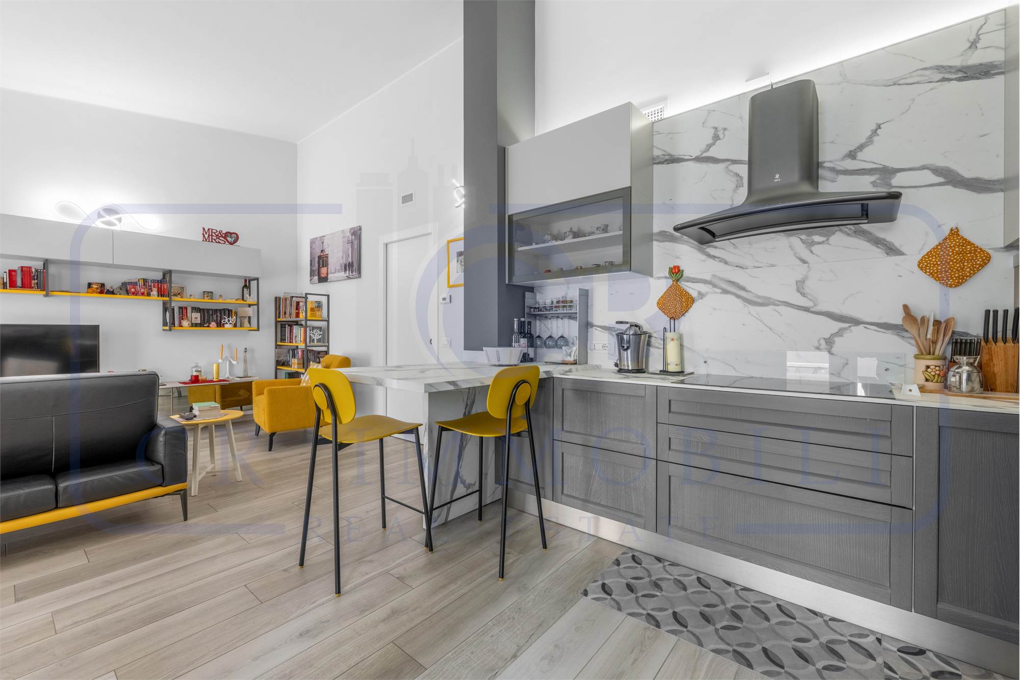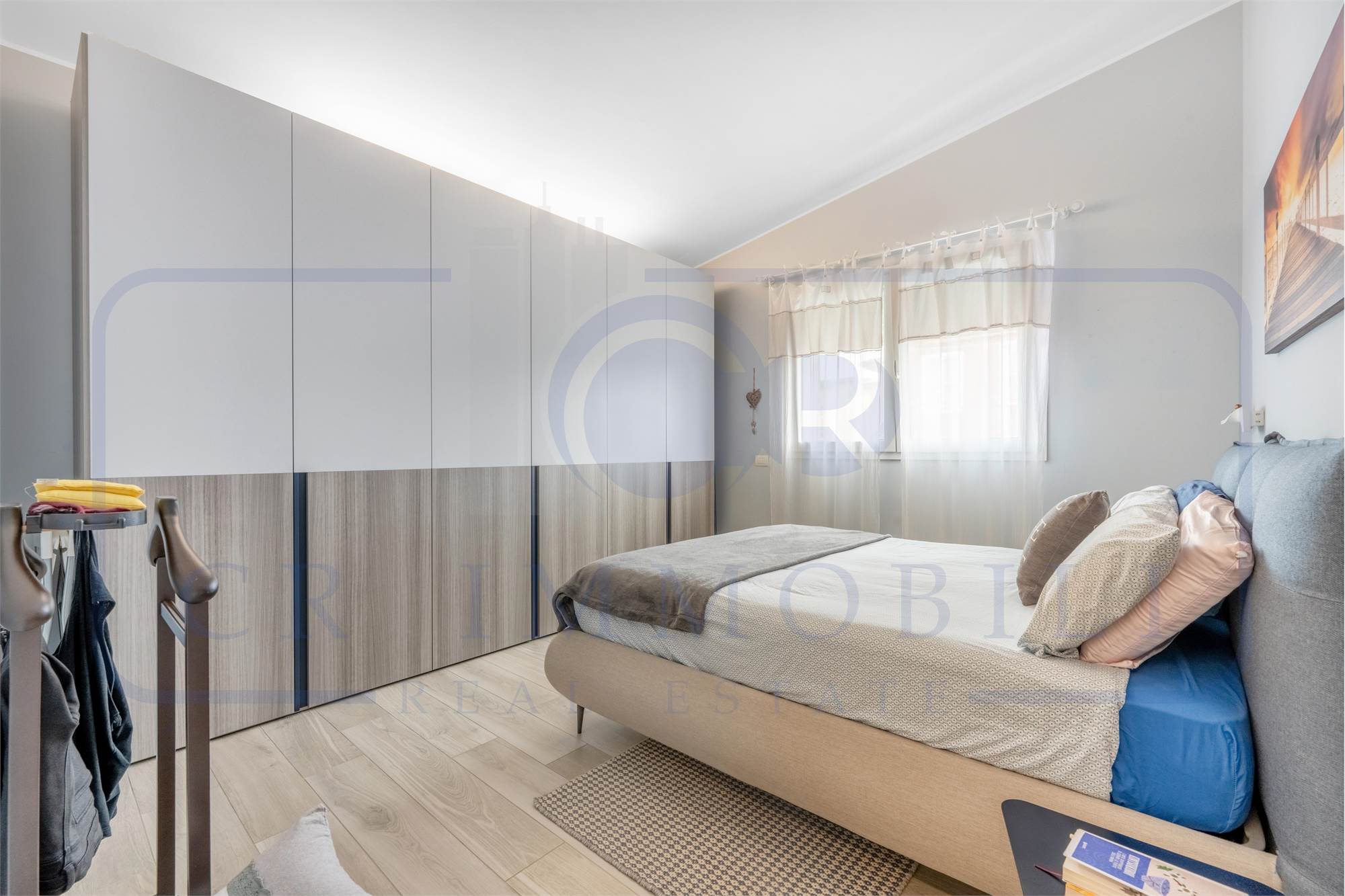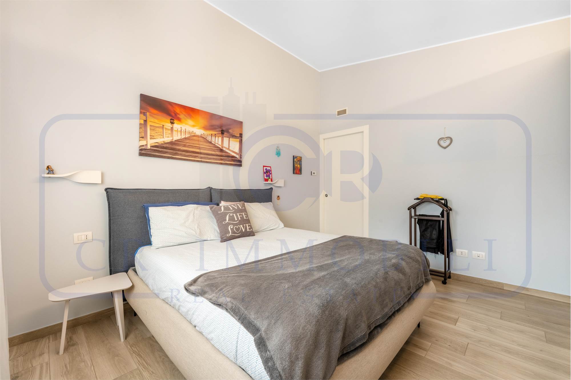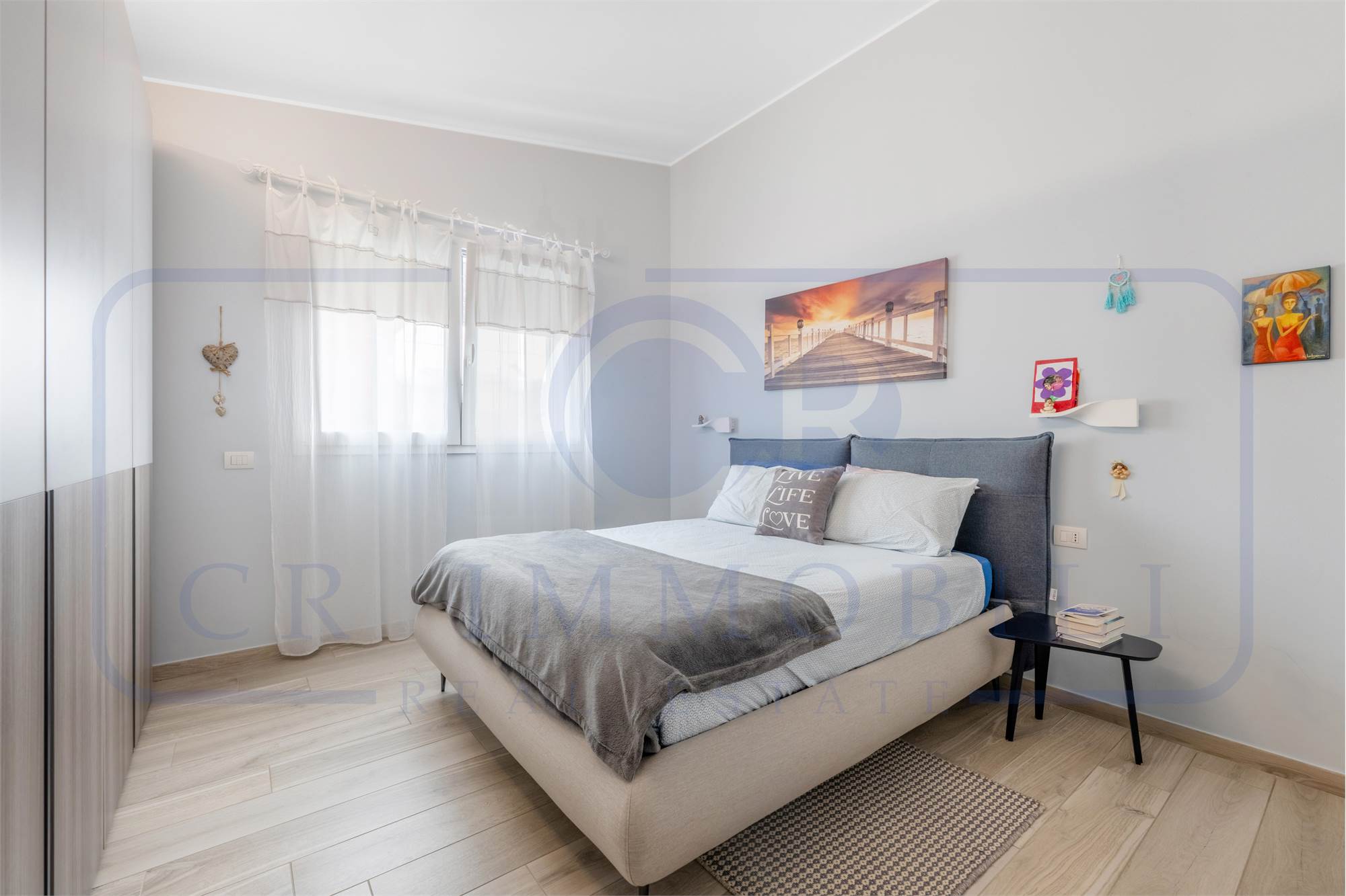 L’appartamento è composto da ingresso, luminoso soggiorno, comoda cucina a vista, terrazzo, disimpegno zona notte, camera matrimoniale, seconda camera e doppi servizi entrambi finestrati.